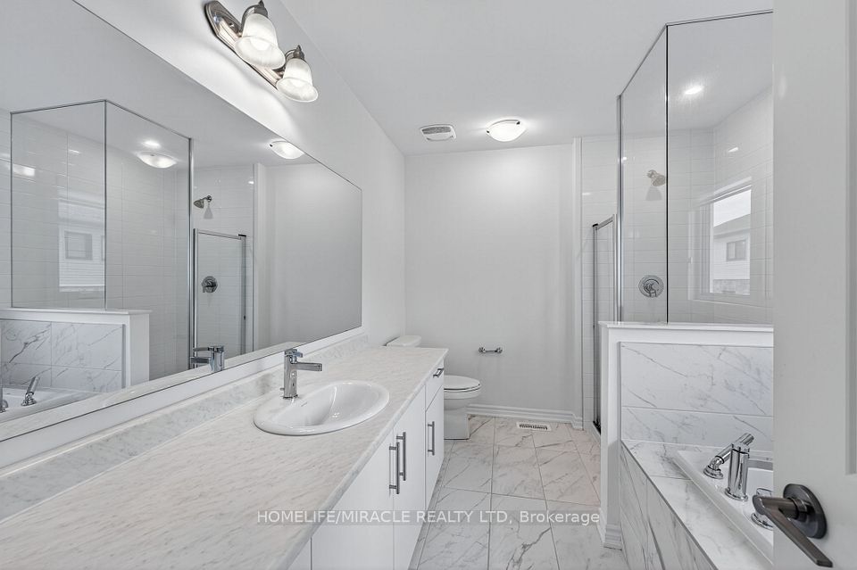 Location!!Location!! Just 1 Year New freehold double car detached home available for Sale| Over 2,550 Sq Ft with 5 Bedroom at Prime South Barrie Location - Welcome to this stunning, new home offering 2,569 sq ft of beautifully designed living space in one of Barrie most sought-after, family-friendly neighborhoods. Featuring 5 spacious bedrooms upstairs plus a main floor office/Den. This home delivers the space and flexibility modern families need. The inviting grand foyer with 9-ft ceilings leads into a stylish, open-concept main floor with rich hardwood flooring, a separate sitting room, and an entertainers dream kitchen, complete with a large center island, breakfast bar, stainless steel appliances, and casual eat-in dining. The adjoining living room is bright and welcoming- perfect for hosting or relaxing together as a family. Upstairs, the primary suite offers the perfect escape, with two generous walk-in closets, a private 4-piece ensuite, and beautiful natural light. You'll also find four additional large bedrooms, convenient second-floor laundry, and another full 4-piece bath. The unfinished basement is a blank canvas with endless possibilities add bedrooms, a home gym, rec room, or an in-law suite with ease. Additional Highlights: Double car garage with inside entry, Main floor 2-piece powder room, Steps to the Barrie South GO Station, Costo. Hwy 400, Yonge St, Surrounded by top-rated schools, trails, parks, shopping & restaurant. Come see the lifestyle that awaits. Prime location with a beautiful park right at your doorstep and no front neighbors just a tranquil park setting steps from your door. Some photos have been virtually staged to help visualize the potential of the space.
