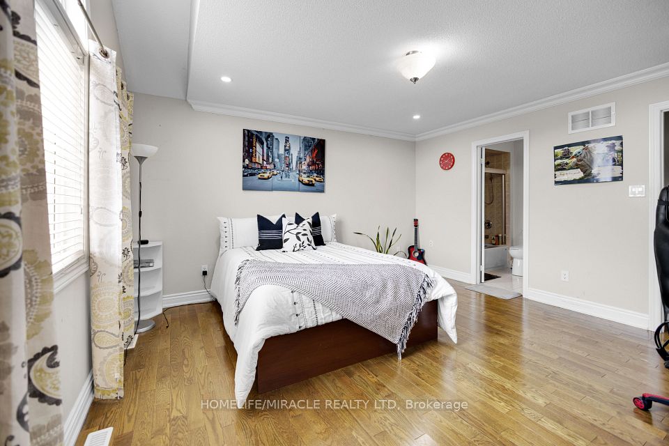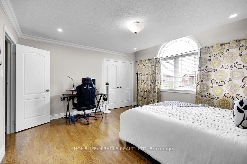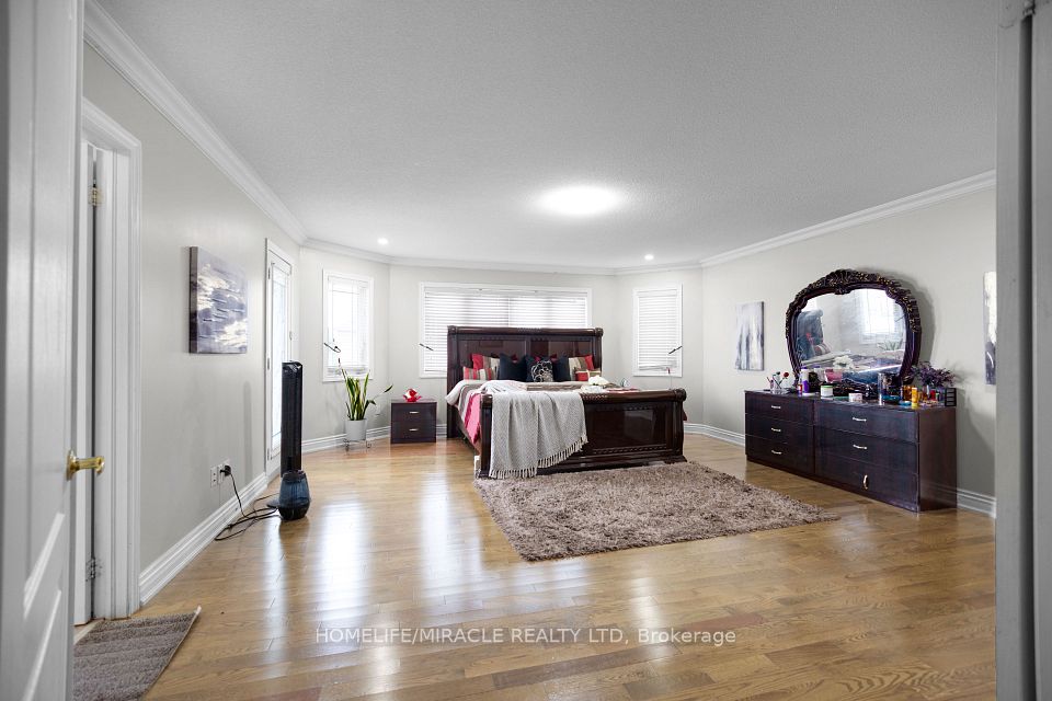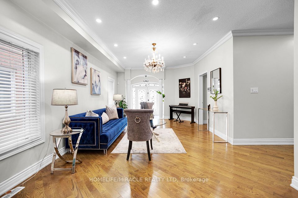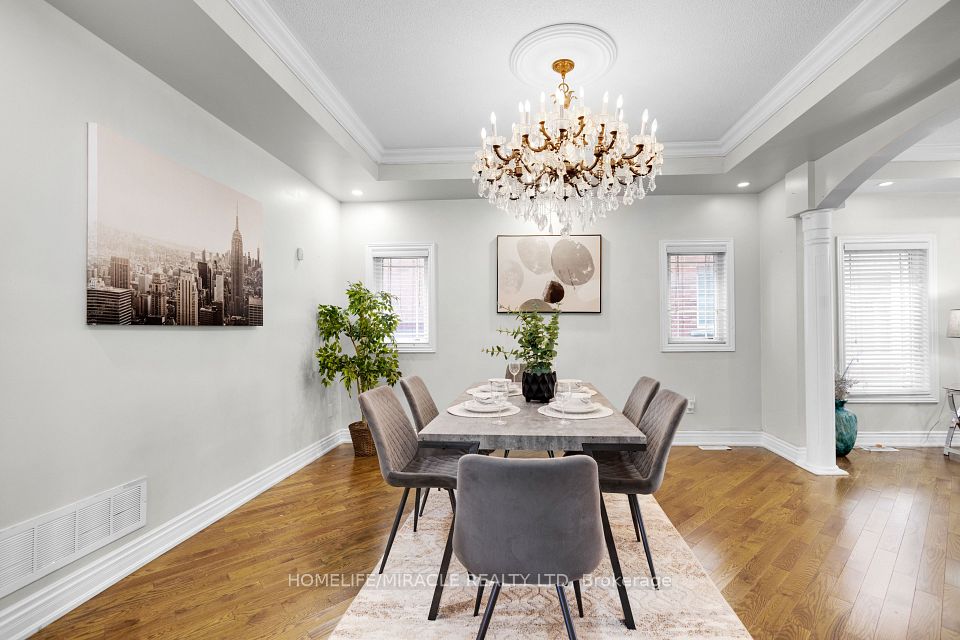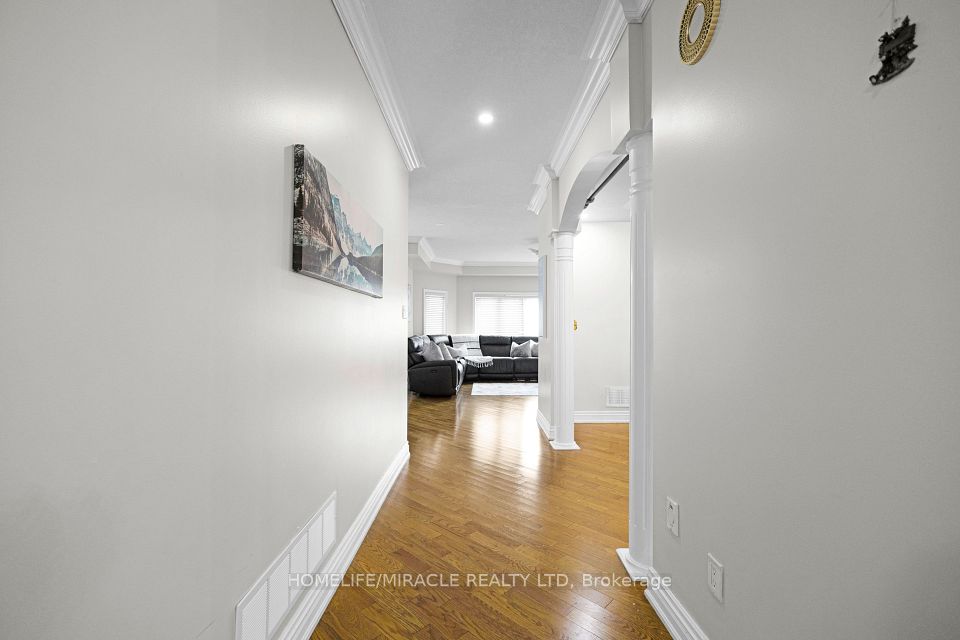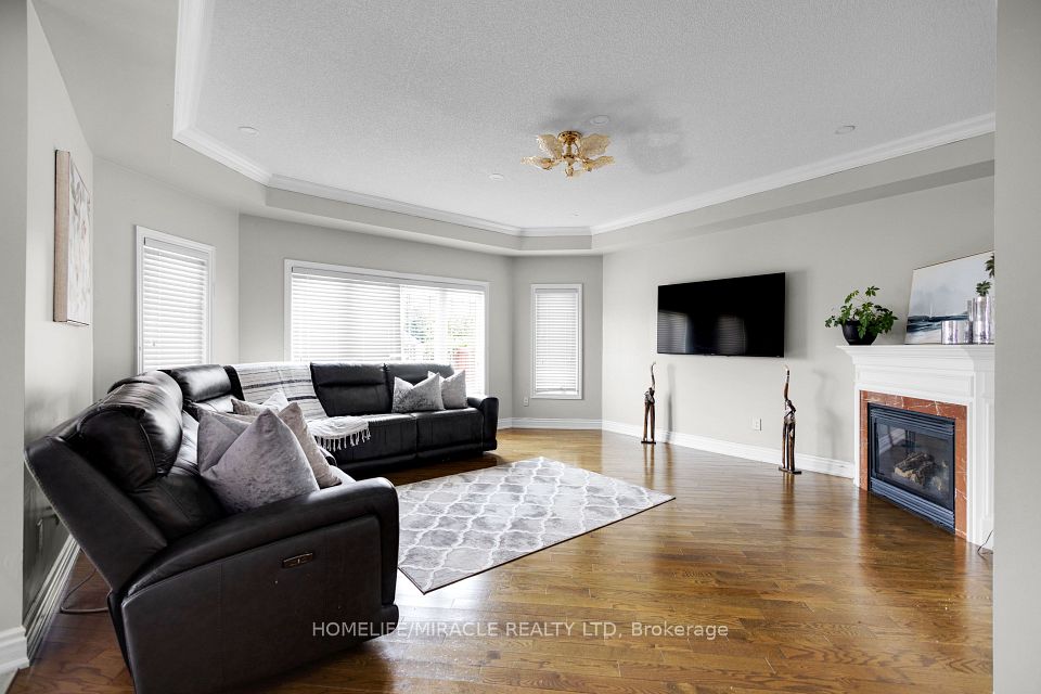 Welcome to this stunning 4+3 bedroom detached home in the highly sought-after Meadowvale Village community near Derry & McLaughlin, offering luxury, space, and income potential all in one. Boasting 10-ft ceilings on the main floor and 9-ft upstairs, this freshly painted home features hardwood flooring throughout, elegant crown molding, pot lights, and a spacious custom-built kitchen with granite countertops and high-end built-in stainless steel appliances. The functional layout includes separate living and dining areas, a cozy family room with fireplace, and two dedicated offices (main and upper level) perfect for working from home. The primary bedroom offers a private balcony, walk-in closet, and a luxurious 5-piece ensuite, while additional bedrooms enjoy Jack & Jill and private bathroom access. The fully finished basement features a 3-bedroom apartment with a separate entrance, full kitchen, bath, laundry, and income potential of $2500 to $3000/month. Exterior highlights include a double garage, wraparound porch, and fully fenced backyard. Located in an excellent family-friendly neighborhood close to top-rated schools, parks, plazas, Heartland Centre, transit, GO Station, and major highways (401/407/410)this is the perfect place to call home or invest with confidence.